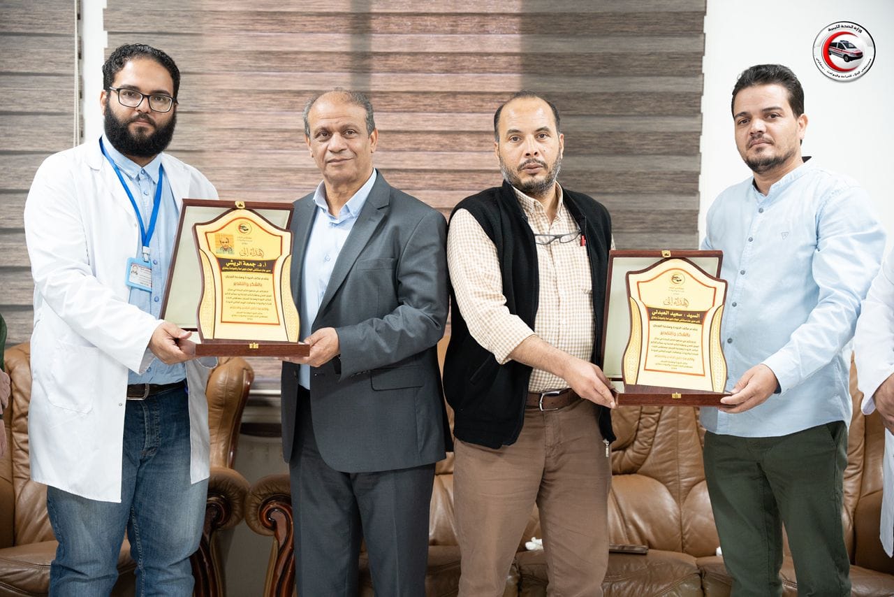 التقى المدير العام لمستشفى الجلاء للجراحة والحوادث، أ.د.جمعة الريشي، ونائبه أ. سعيد العبدلي، بأعضاء مكتب الجودة وسلامة المريض في إطار تعزيز التعاون المشترك بين إدارة المستشفى والمكتب. وخلال اللقاء، أعرب مكتب الجودة عن شكره وتقديره للجهود التي يبذلها المدير العام لدعم وتحسين مستوى الخدمات الصحية بالمستشفى، مؤكدين أن هذه الجهود ساهمت بشكل ملموس في تحقيق معايير الجودة والسلامة. من جانبه، أثنى أ.د. الريشي على الدور المحوري الذي يقوم به مكتب الجودة، مشيدًا بمساهماته في تحسين الأداء وضمان سلامة المرضى، كما أكد على أهمية استمرار التنسيق والعمل بروح الفريق لتحقيق الأهداف المشتركة. واختُتم اللقاء بتكريم مكتب الجودة للمدير العام لمستشفى الجلاء، ونائبه تقديرًا لدعمها المستمر وتعاونهما المثمر مع المكتب، في خطوة تعكس الشراكة الفعالة بين الطرفين لتحقيق أعلى مستويات الخدمة الطبية.