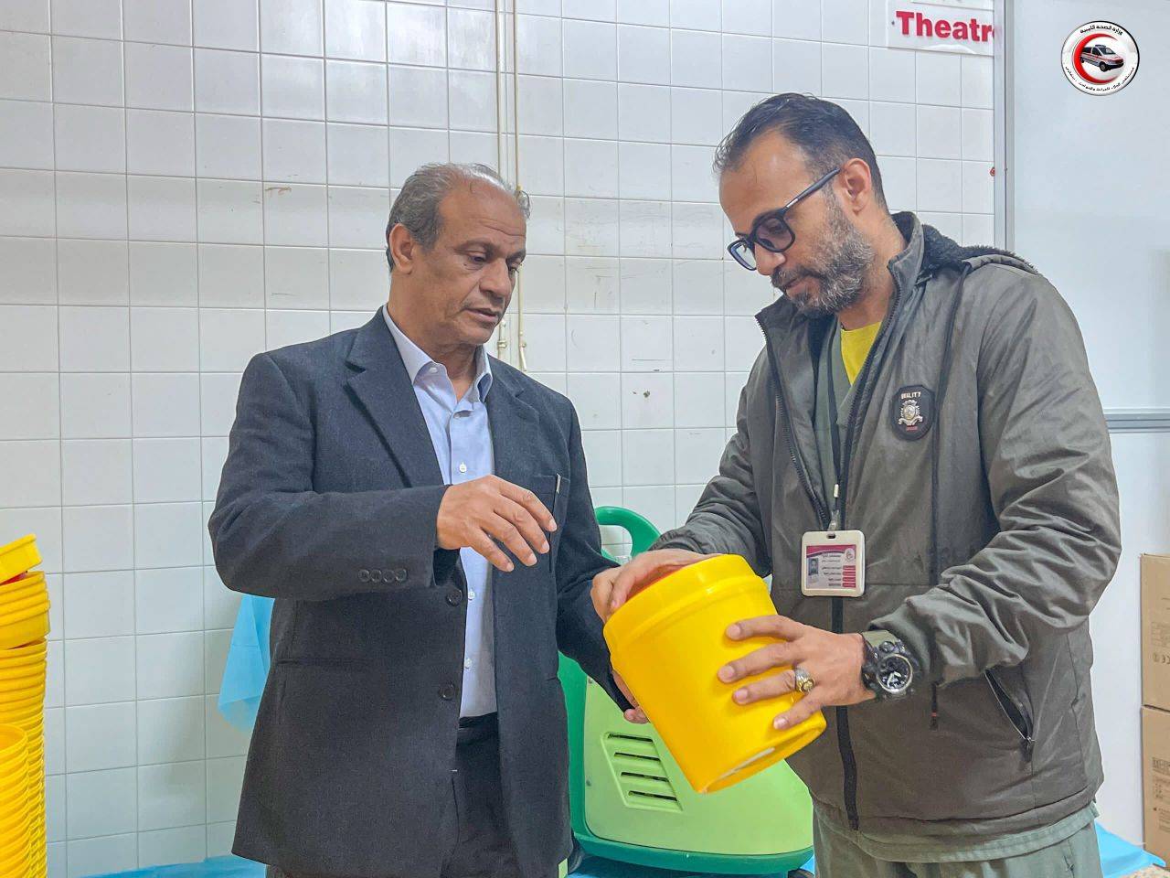 قام مدير عام مستشفى الجلاء للجراحة والحوادث، أ.د.جمعة الريشي، بزيارة تفقدية شملت غرفة الحياكة الخاصة بالمستشفى، ومكتب وحدة التعقيم والتطهير، بالإضافة إلى قسم المخلفات الطبية.